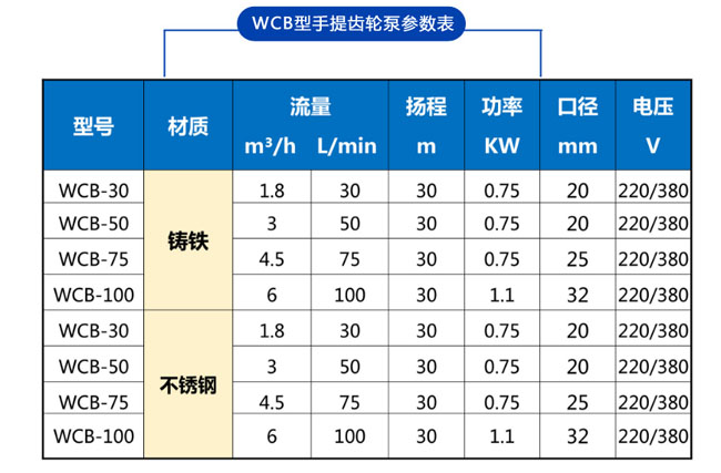 WCB便攜式手提油泵屬于低壓力微型手提式節(jié)能輸油泵,可使用220V電壓啟動,體積小,重量輕,并配有手柄方便用戶提在手中移動。WCB便攜式油泵保養(yǎng)方便,性能可靠,使用壽命長,外觀簡潔 ,結(jié)構(gòu) 合理,采用國際標準 ,可輸送液體不可含固體顆粒,輸送溫度不高于70℃ 。 適用于無動力電源的出售單位油桶軸油,也適用于煉油廠、電廠、電站、變電所(室)及油庫輸油。稀油潤滑系統(tǒng)的稀油轉(zhuǎn)運。